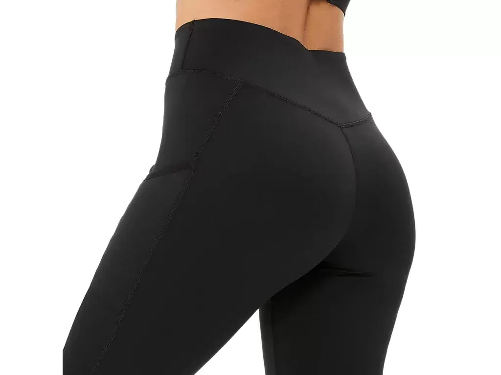 Tightsen är skapad med en v-skuren midjeband, en tunn midjeband och en speciell tunn midjeband. andningsförmåga och sidofickor för att förvara mindre väsentligheter.