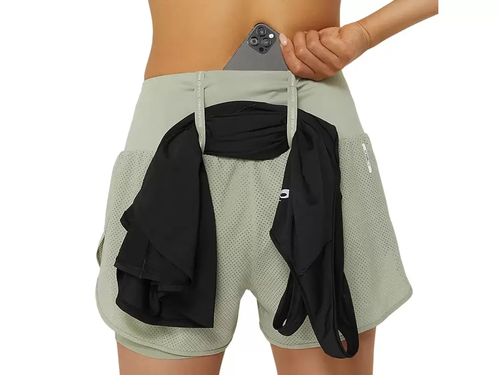 Denna shorts har flera lättåtkomliga förvaringsalternativ, ett integrerat midjeband med tre fickor och flera förvaringsmöjligheter på sprintern. Dessutom finns det ett förvaringssystem med elastisk ögla för en jacka, tröja, handduk eller något som helst att springa på.