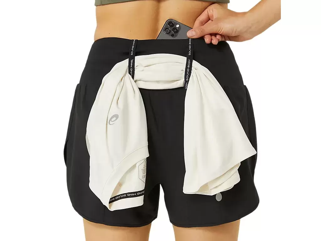 Denna shorts har flera fickor, inklusive: en mittbakficka för telefonförvaring och två mindre fickor framtill. Dessutom finns det ett elastiskt öglasystem för att förvara en jacka, tröja, handduk eller något som helst som helst att springa.
