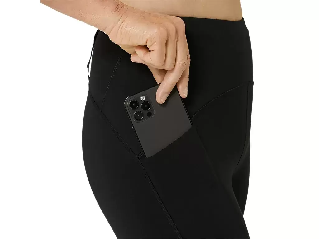 Tack vare den stödjande passformen och det mjuka, stretchstickade tyget ger dessa tights en mer sval och bekväm känsla i varierande temperaturer. Denna tight har en bekväm telefonficka på baksidan och en extra telefon- eller gelélårficka som är svettbeständig och studsbegränsande. Dessutom finns det ett SMSB-system för förvaring av elastiska öglor för en jacka, tröja, handduk eller något som helst att springa på.