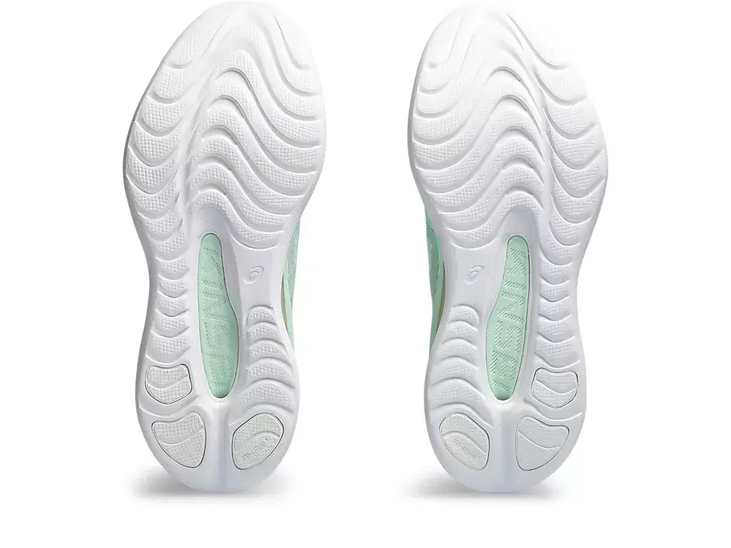 En TPU-mellansulaplatta är placerad i mitten av mellansulan för att ge en mer dynamisk tå-off. Den fungerar också tillsammans med den nya gummiskumningen och Hybrid GEL®-tekniken för att skapa mjukare övergångar under foten.
