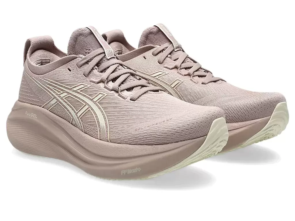 GEL-NIMBUS® 27 skons mjuka dämpningsegenskaper hjälper dig att känna att du landar på moln. Den här designen är omarbetad för att hjälpa till att skapa en mjukare och smidigare löpupplevelse.