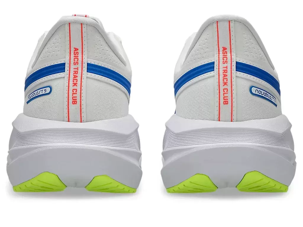 NOVABLAST® 5 ATC löparskons mellansula och yttersula geometri som hjälper till att producera en energifylld åktur. Dess färgsättning är inspirerad av träningsoveraller och löparskor från 1980-talet.