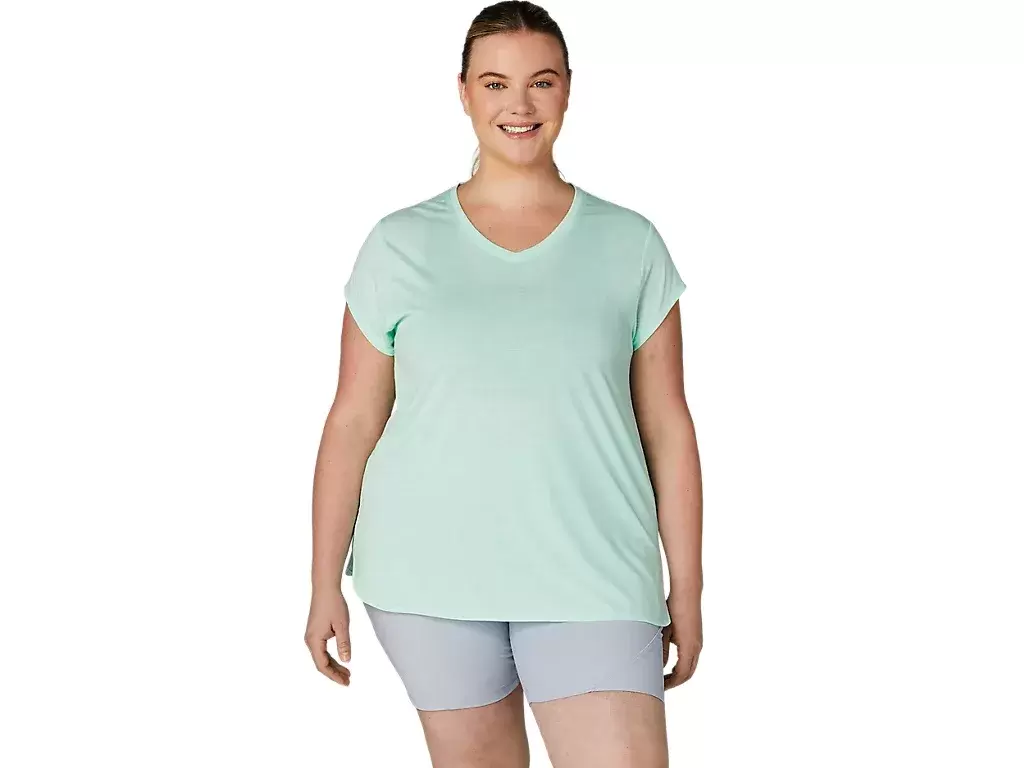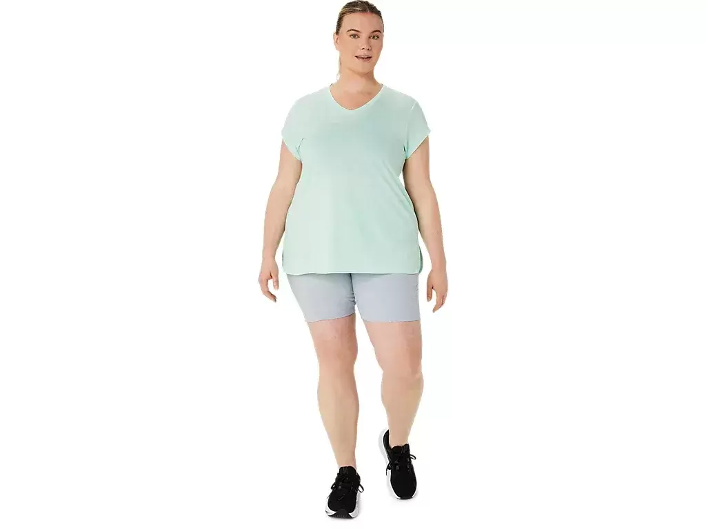 Denna kortärmade V-ringad topp är designad för att ge en snygg känsla intill huden. Den har ett bekvämt stickat tyg som är ihopkopplat med främre sidsömmar för att förbättra rörelsefriheten.