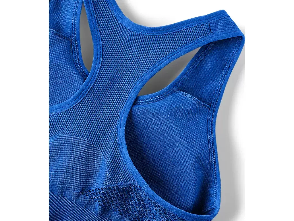 Denna bh med lågt stöd har också ett räfflat band för extra stöd. Meshstrukturen och mönstret och den vidöppna racerbackdesignen hjälper till att röra sig med din kropps naturliga armhöjande rörelse så att du kan hålla fokus under träningen.