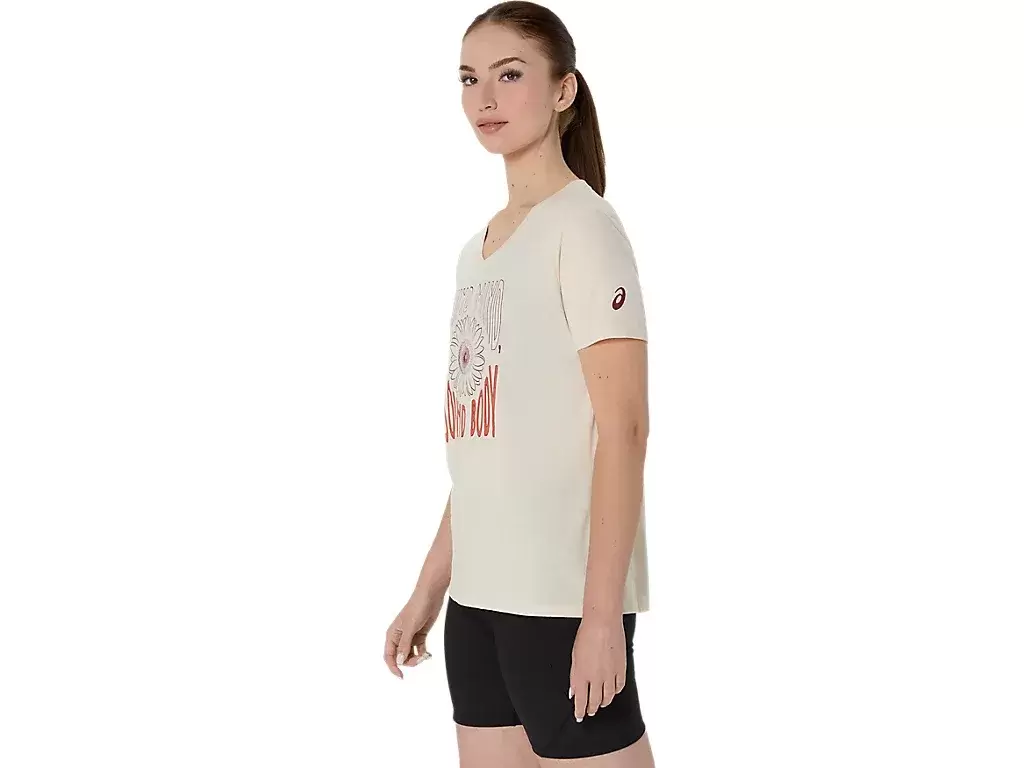 Denna kortärmade V-ringad topp är designad för att ge en snygg känsla intill huden. Den har ett bekvämt tyg som är avsett att förbättra rörelsefriheten.