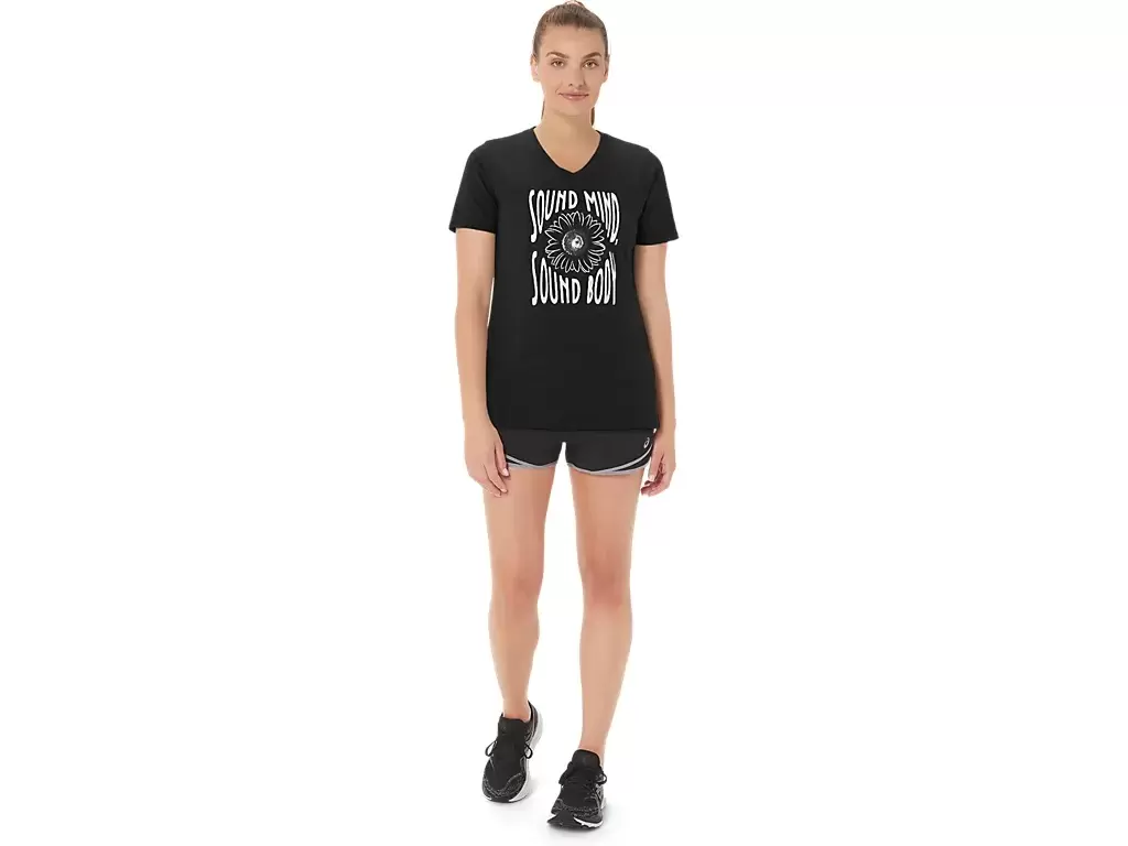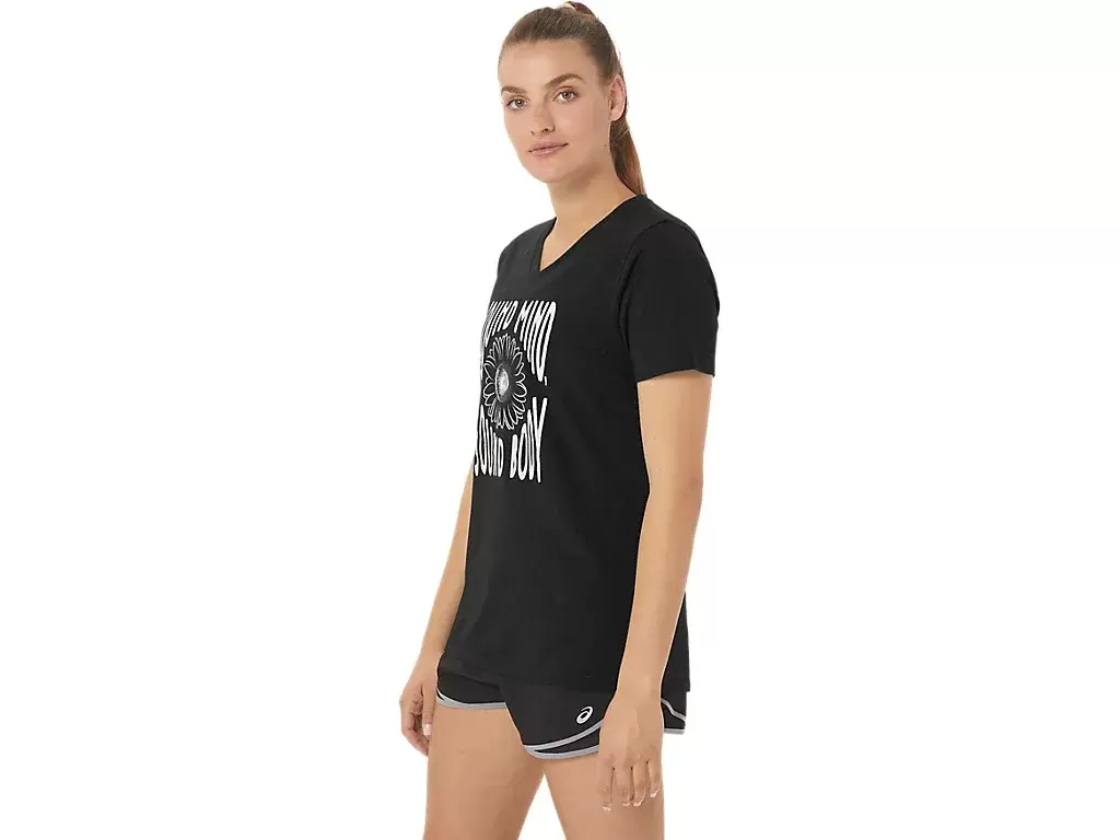 Denna kortärmade V-ringad topp är designad för att ge en snygg känsla intill huden. Den har ett bekvämt tyg som är avsett att förbättra rörelsefriheten.