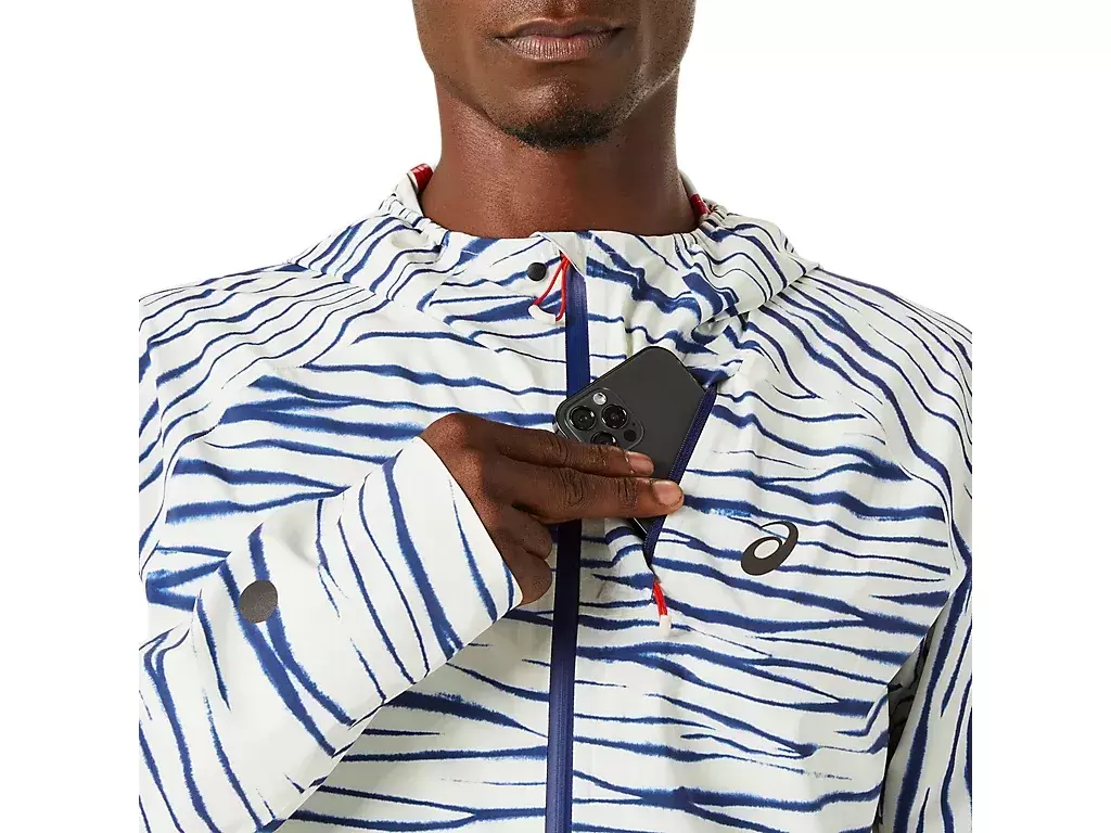 METARUN™ SHIBORI WATERPROOF-jackan är en av de mest avancerade jackorna i ASICS löparkollektion. Den är funktionell när du kör elementen och kan enkelt tas av och packas i bröstfickan under löpningen. Jackan har en grafik inspirerad av Shibori, traditionella japanska färgningstekniker. Denna jacka har en helt vattentät konstruktion, är lätt och andas. Jackan har tumhål och en justerbar huva med integrerat visir. Dess ergonomiska design och drop shoulder-konstruktion förbättrar rörelsefriheten. Det finns också en passformjusteringssnöre på fållen som hjälper till att hålla jackan på plats när du är i rörelse. Minst 50 % av plaggets huvudmaterial är tillverkat av återvunnen polyester för att minska emissionsavfall och emissionsavfall. #:2011D124.200