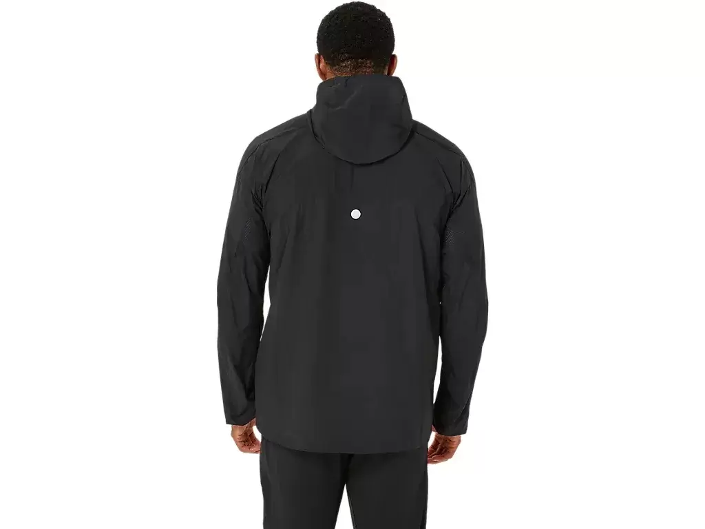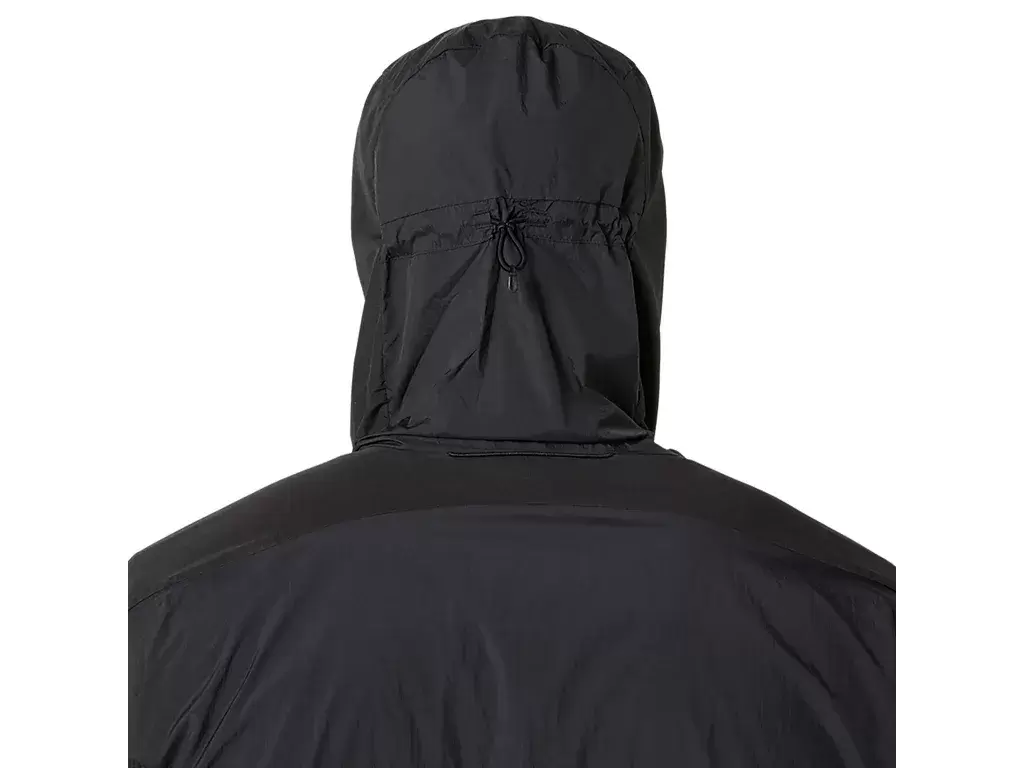 Det är en mångsidig jacka designad för att skydda mot regn och vind och kan enkelt tas av och packas i sidfickan under löpningen.
