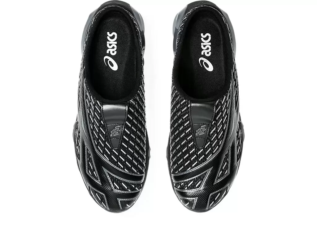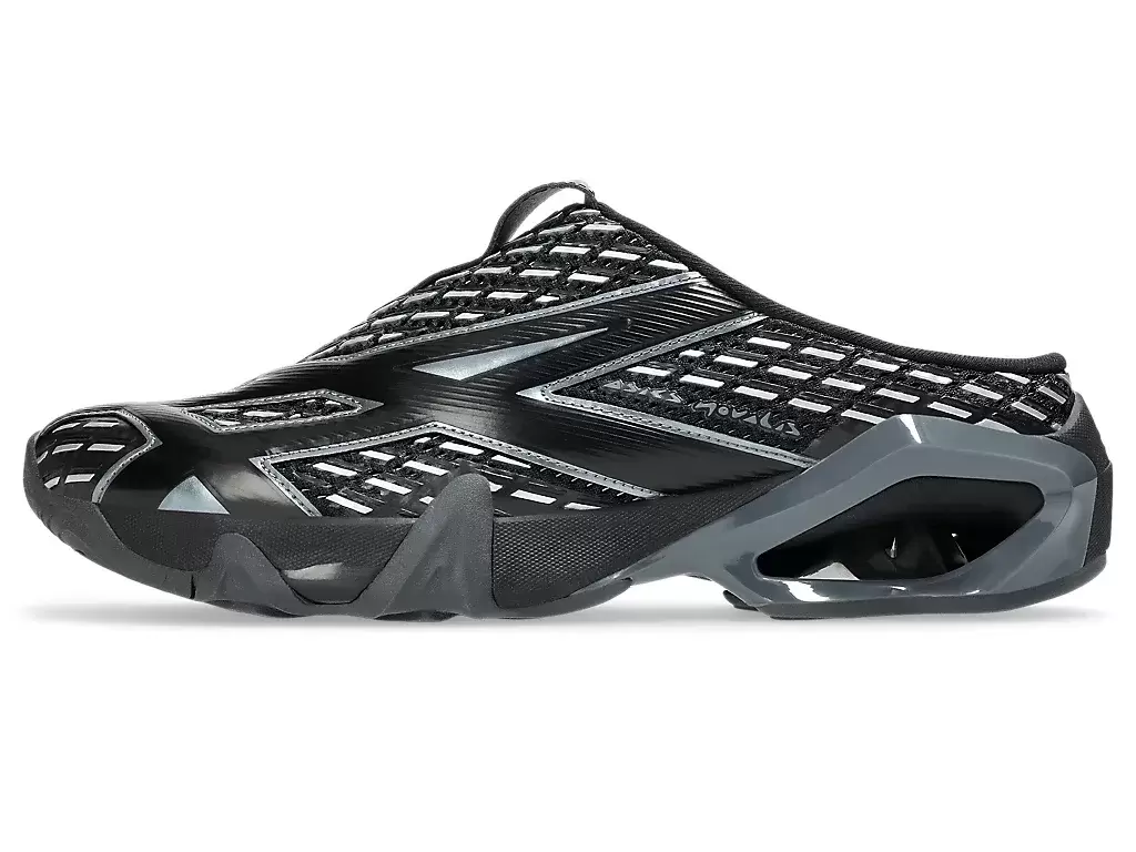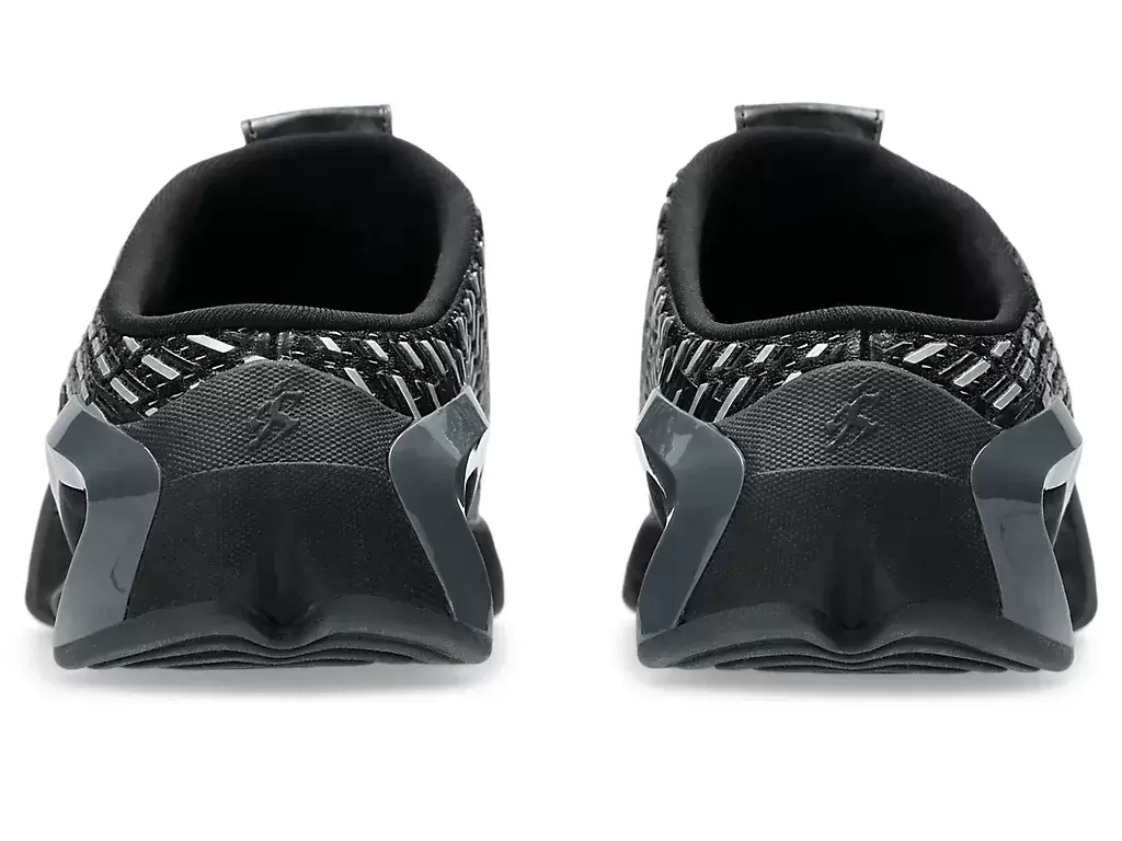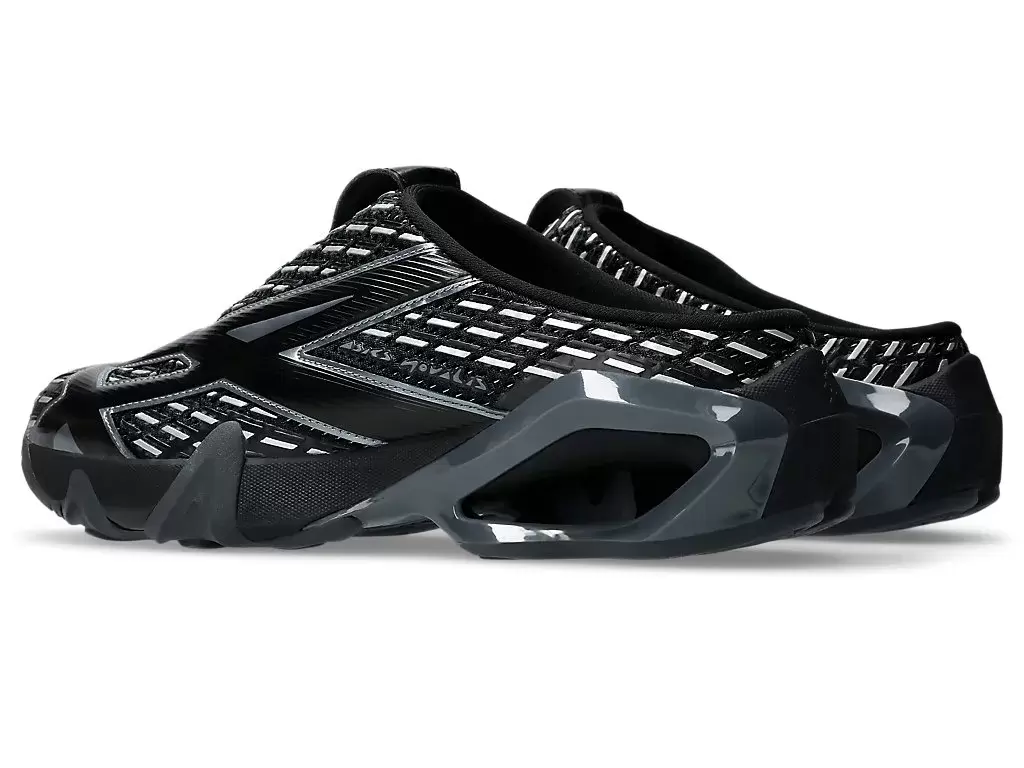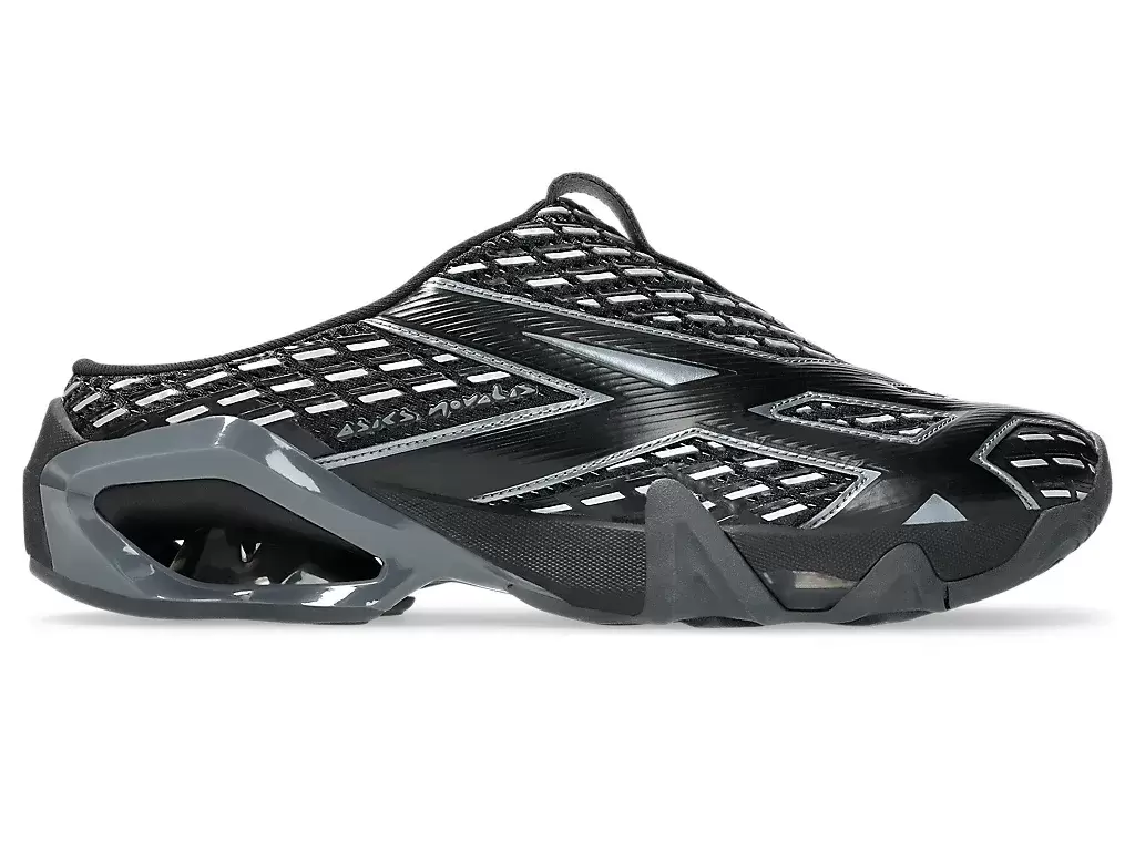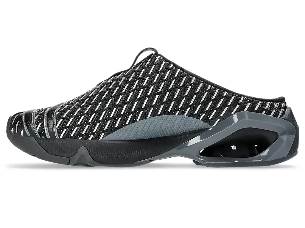 Grafiken från TRANSCEND-seriens skjortor återskapas på skons ovandel. Silhuetten är också utformad med en sabotliknande konstruktion för att göra skorna lättare att ta av och på.