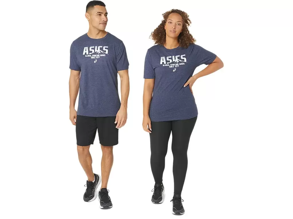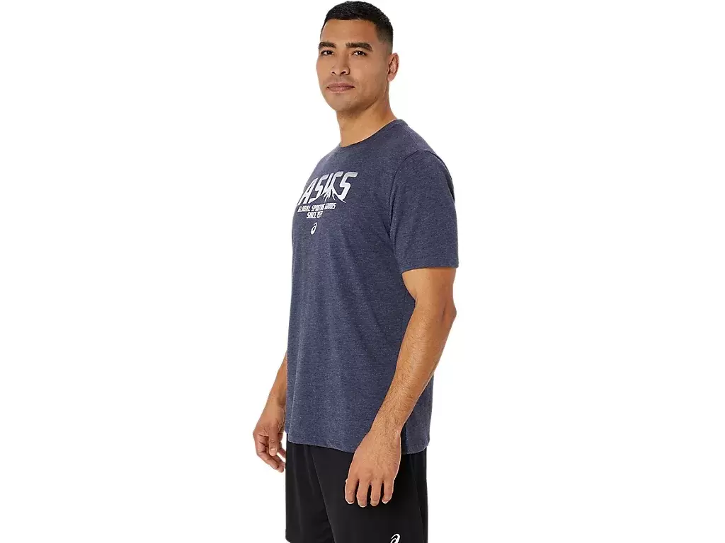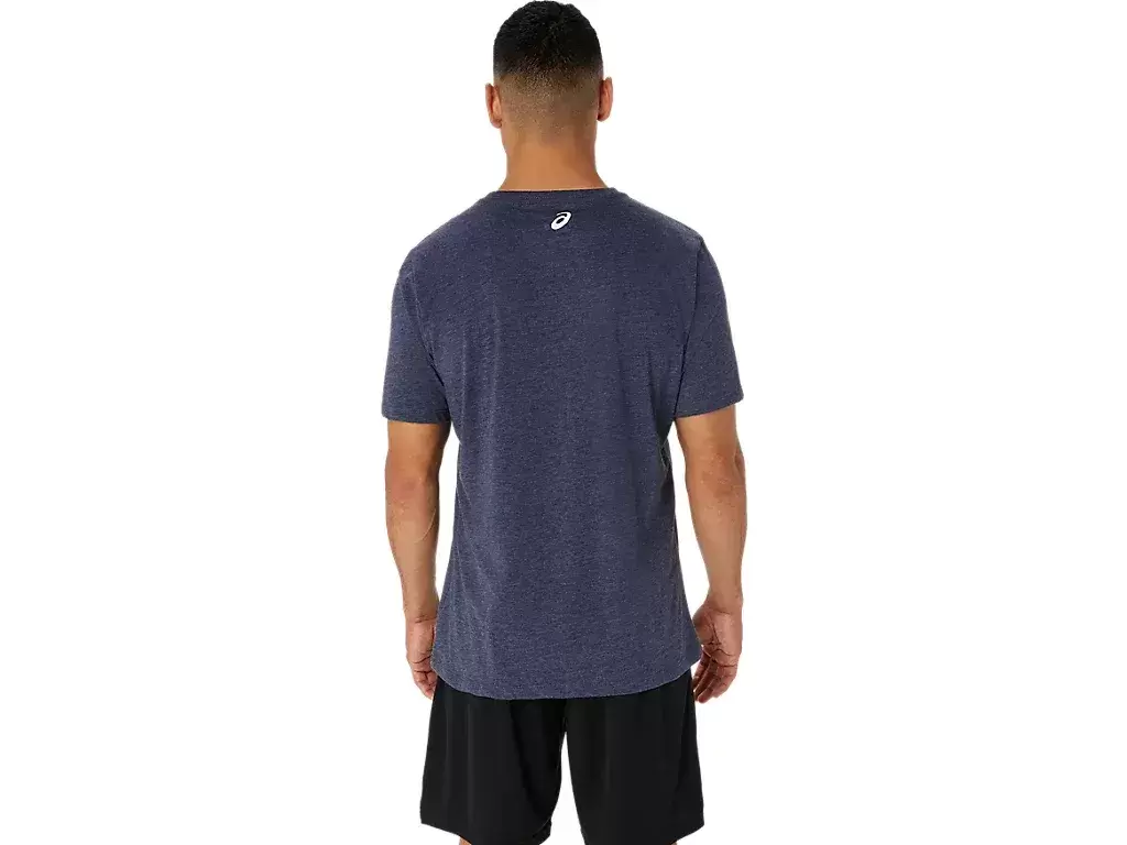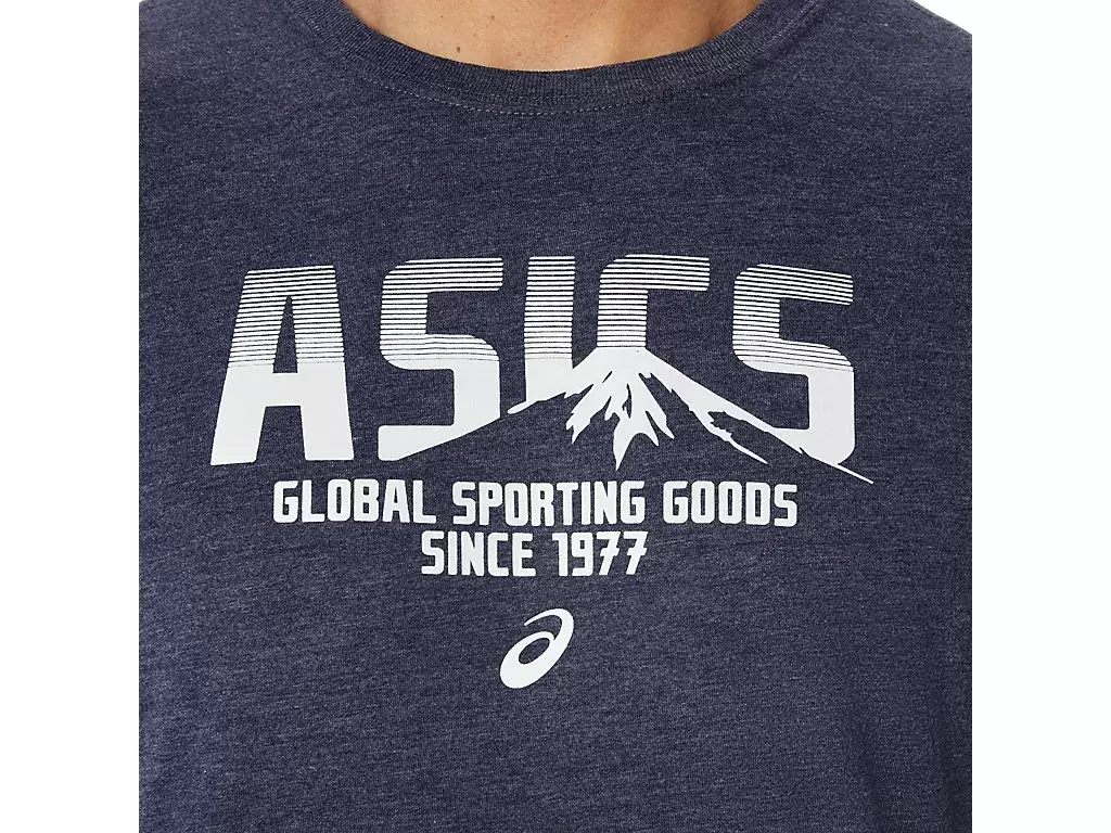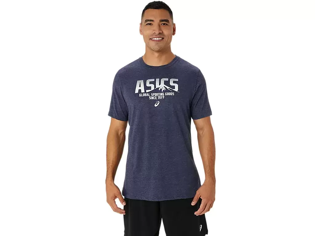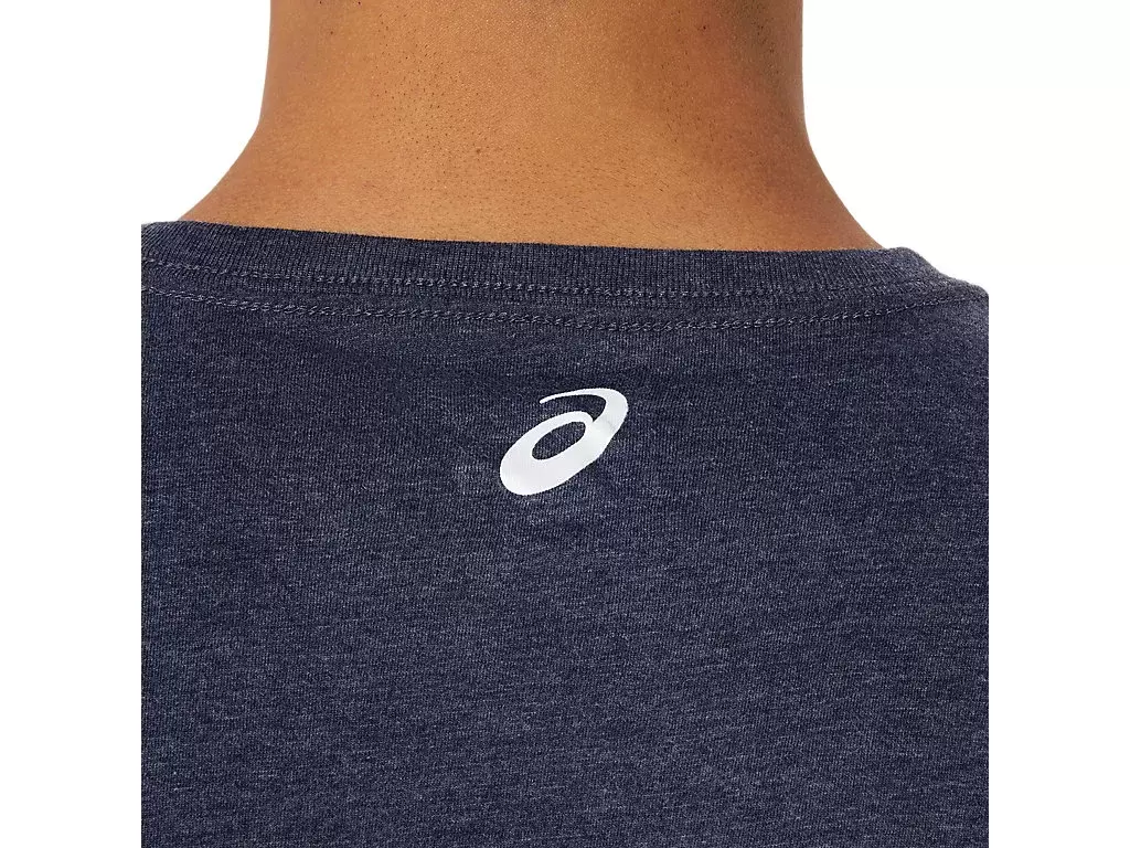 Tröjan är konstruerad med ett stickat tyg och är funktionell för en mängd olika träningsscheman. Den här t-shirten har också en ASICS-logotyp längst fram, samt en bergslogotyp som har arbetats in i designen.