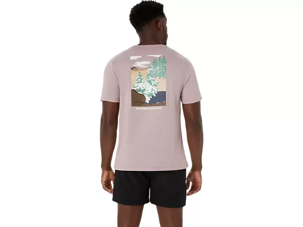 Denna bekväma stickade kortärmade t-shirt hämtar inspiration från scener i naturen. Den har en fridfull skogsgrafik som möts av frasen ””UTFORSKA MED ASICS”” över bröstet.