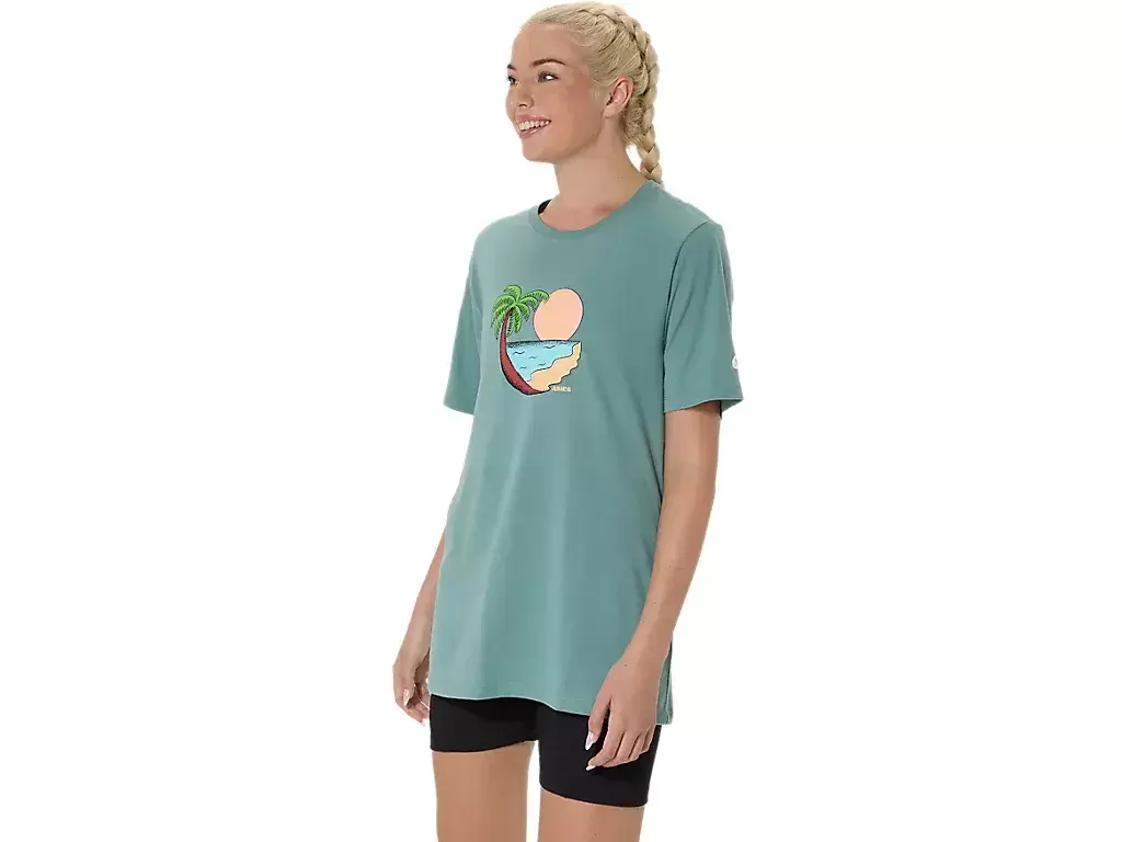 | Vår ASICS PALM IN THE SUN KORTÄRM TEE är designad med en tropisk grafik.ASICS®-odling för att förbättra globalt. Genom att välja våra bomullsprodukter stödjer du vår investering i Better Cottons uppdrag. Better Cotton kommer från ett system med Mass Balance och får inte innehålla Better Cotton. |