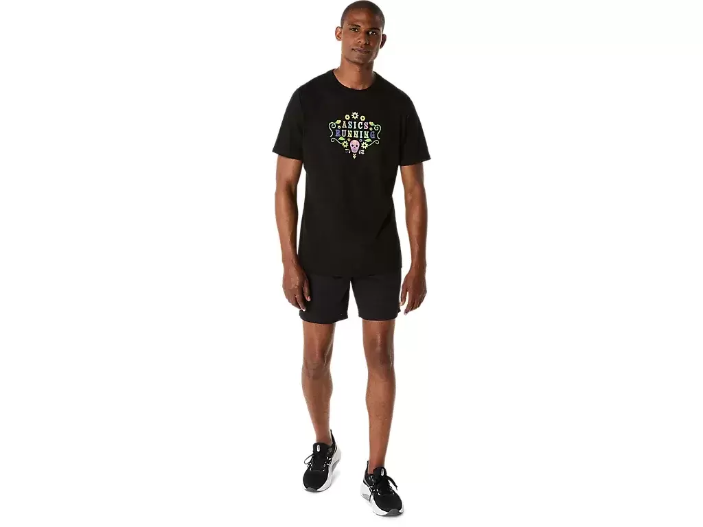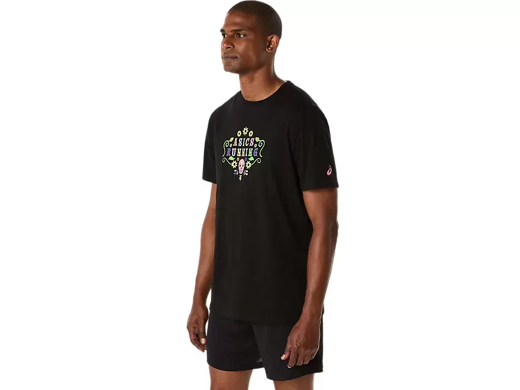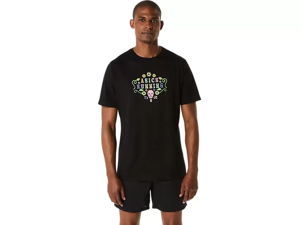 DAY OF THE DEAD KORTÄRM T-shirt är stilig och bekväm och är mångsidig för olika aktiviteter. Plagget är designat med skalle- och blomgrafik som beskriver frasen ASICS RUNNING i mitten. Det här mönstret är också accent med en glöd-i-mörker-applikation för en huvudsvängande look i svagt ljus. T-shirten är också gjord av en mjuk bomullsblandning för att hjälpa dig att hålla dig bekväm.
