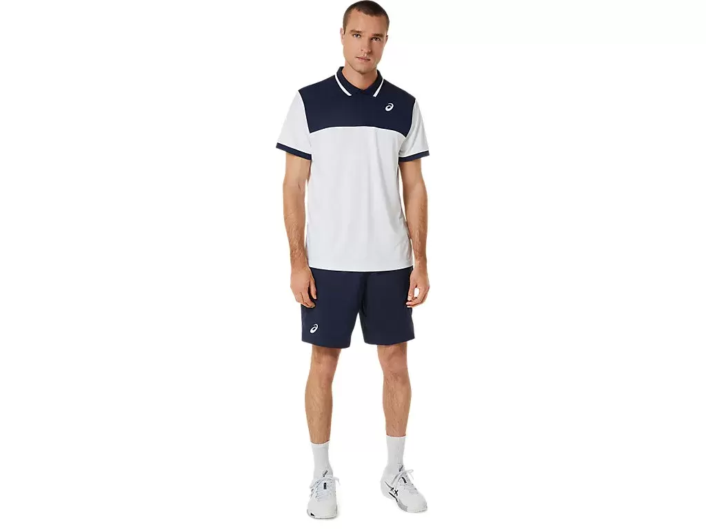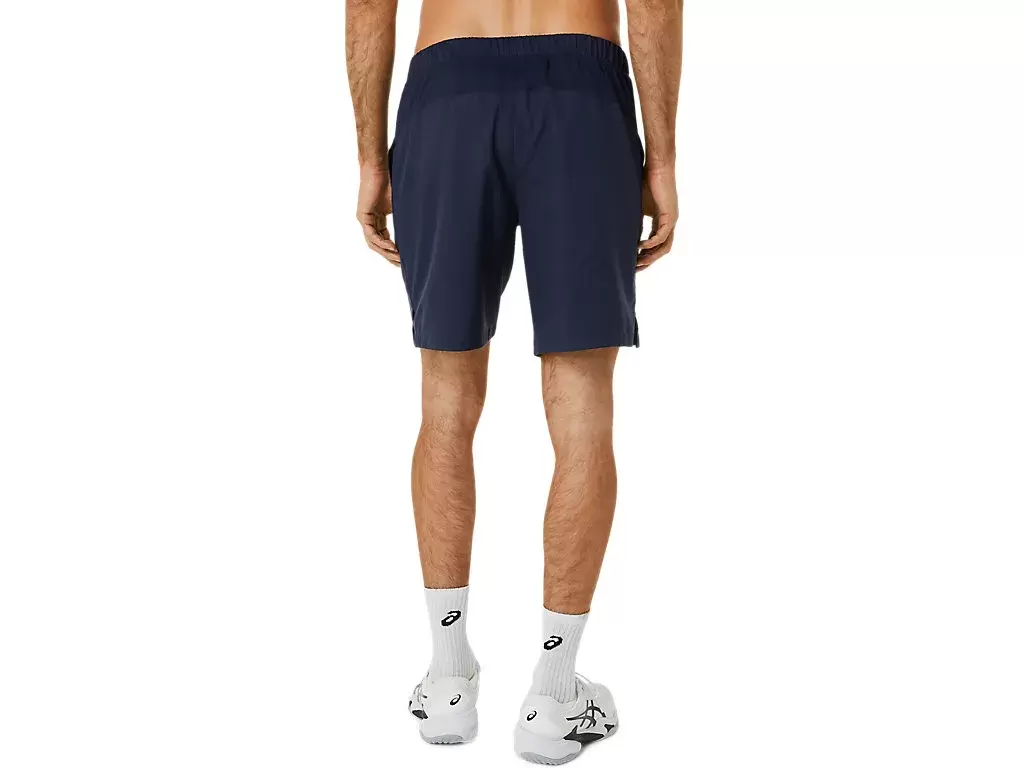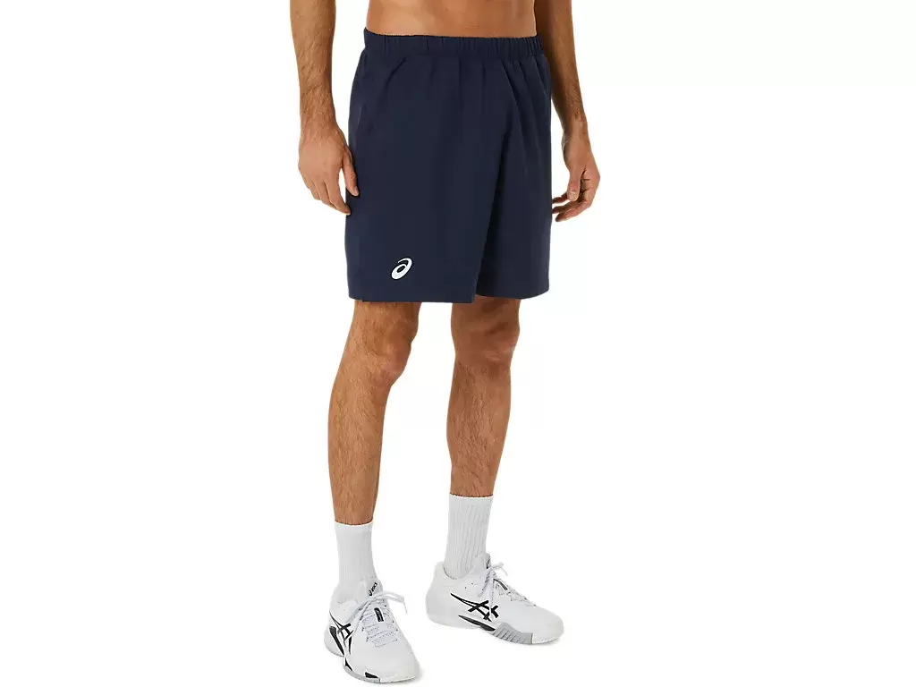 COURT 9IN SHORT har meshpaneler längs midjebandet för att förbättra andningsförmågan, medan det lätta vävda tyget förbättrar fukthanteringsegenskaperna.