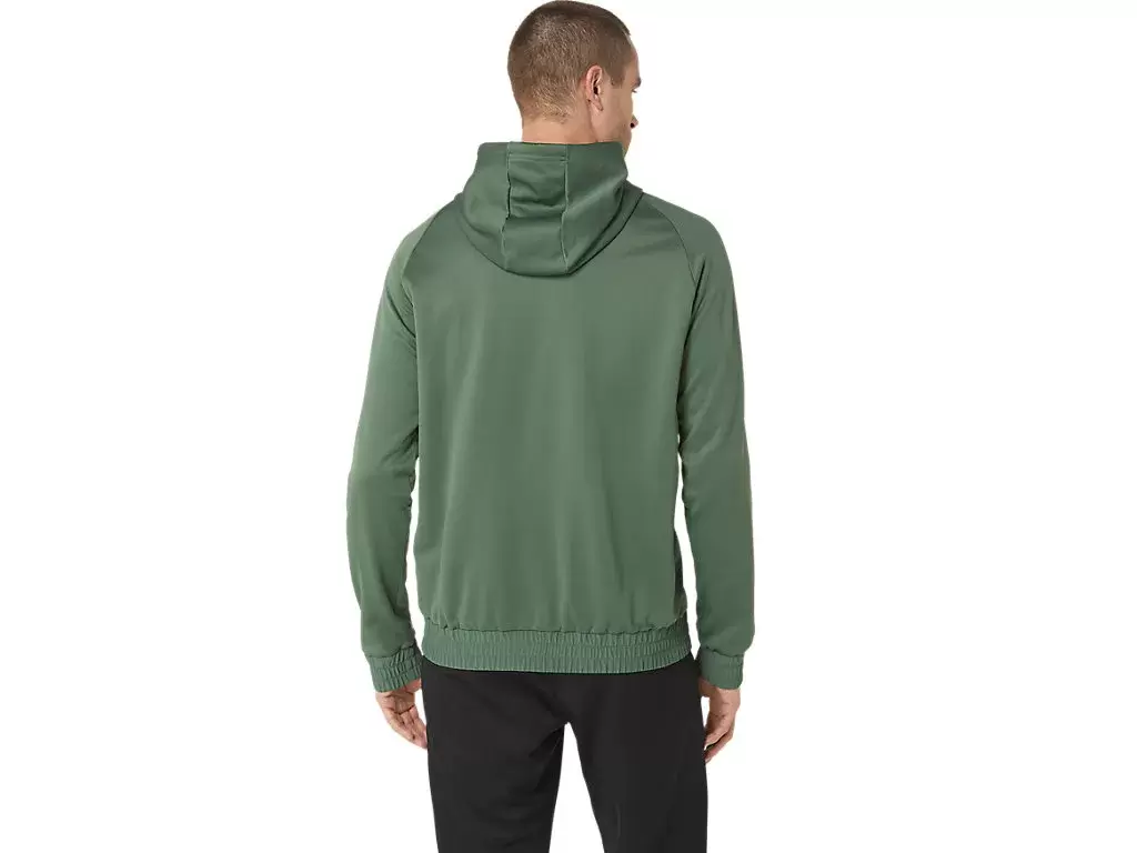 Den är gjord med en mjuk borstad fleece för värme och komfort. Huvtröjan har också en nedfälld axel för ökad rörelsefrihet och en huva som hjälper till att skydda dig från väder och vind.